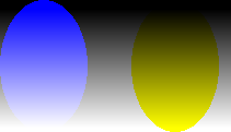 If you draw a filled ellipse, fill a rectangular or polygon area, or do a flood fill in gradient mode without placing a gradient with the gradient placement tool, you can create shapeburst gradients like this:
