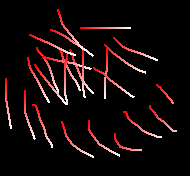 To make stroke gradients work you must firstly clear any gradient line that you have positioned on the canvas by pressing escape or the right mouse button with the gradient placement tool on. Then you must set up the stroke by pressing the right button on the gradient placement icon on the toolbar. As an example for what you can achieve, the following was created using a red to white gradient with a length of 50 and an extension type of 'Mirror':