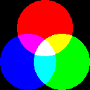 If the tint mode is switched on while editing an RGB image then instead of replacing the whole colour, the operation will increase or decrease the individual colour channel relative to colour A and B. With an indexed image, it will be the index that is increased or decreased. For painting operations pressing the left button will increase, and the right button will decrease. For selection based filling operations you will also need to set the Tint +- toggle to determine which direction the tinting will occur. Here is an example of tinting with blue ellipses over a greyscale image:
