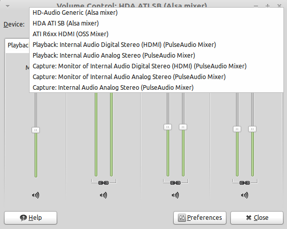 I chose the 'HDA ATI SB (Alsa mixer)' device.