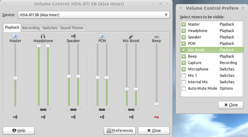 LMDE ships with the 'Beep', 'Capture', and 'Mic Boost'