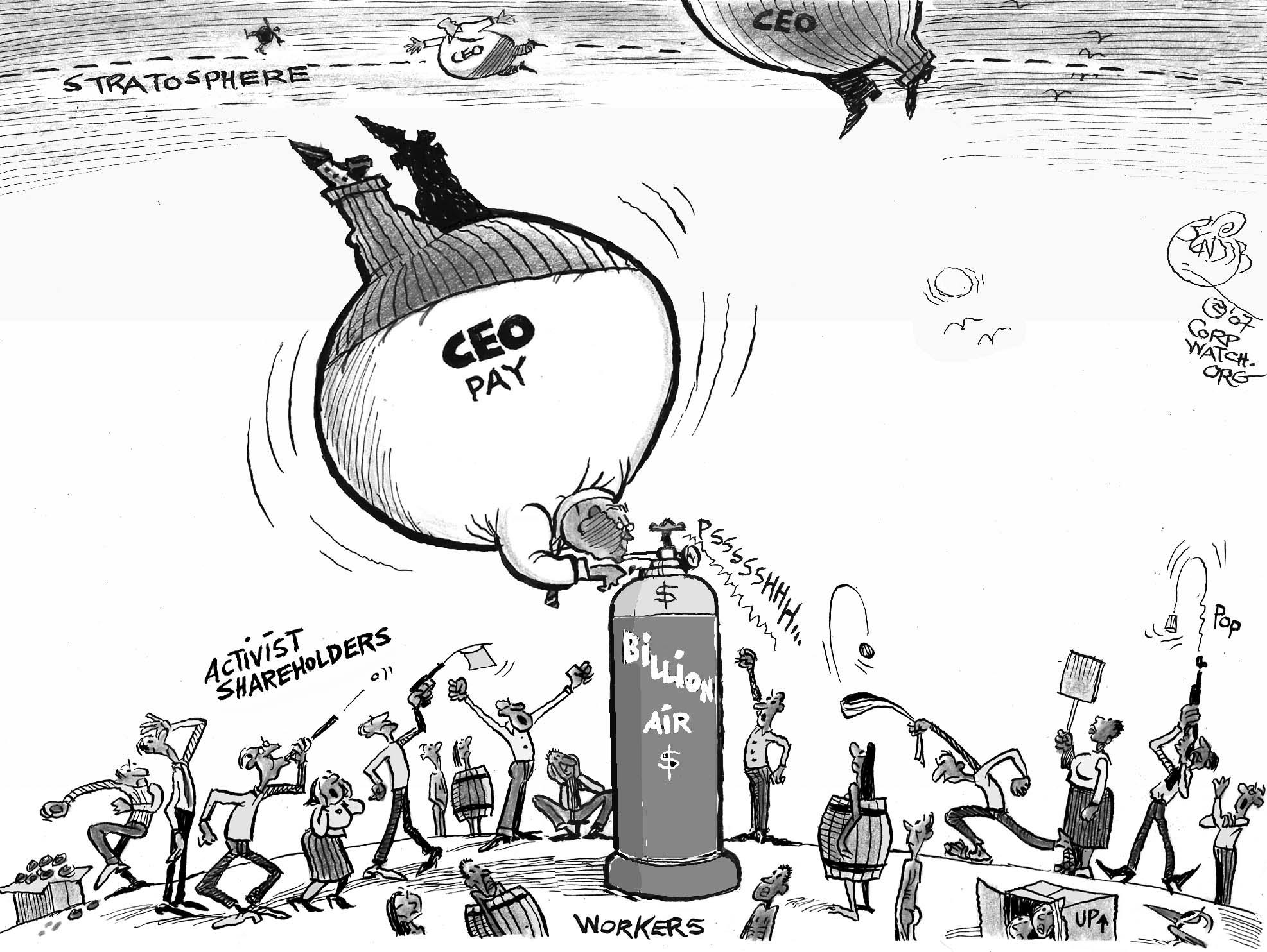 Stockholders VOTE THOSE PROXIES! If you want to help put the brakes on the rapidly accelerating 'pay inequities', do not throw away those 'proxies' without voting them. It is easy to vote via the internet. It just takes a small number of clicks or pokes at a 'proxy vote' web site. In particular, almost every proxy includes a 'say on pay' item in the 'voting instruction form' --- worded something like this: 'Advisory vote to approve executive compensation.' OR 'To approve, on a non-binding advisory basis, the compensation of the named executive officers.' Typically you are offered the options: 'For', 'Against', or 'Abstain'. Or the options: 'For' or 'Withold'. If you think pay increases of 100's of thousands (or millions) of dollars per year are unwarranted (especially after a mediocre or bad year --- or series of years), then vote 'Against' or 'Withold'. It is only 'advisory' --- but if enough people vote this way, mountains can be moved. By the way, those voting forms usually include a list of Board Directors to be elected or re-elected. Since the Directors are complicit in outlandish CEO and NEO compensation practices, if you vote 'Against'/'Withhold' on executive compensation --- to be consistent --- you should vote 'Against'/'Withhold' on election of Board Directors. |